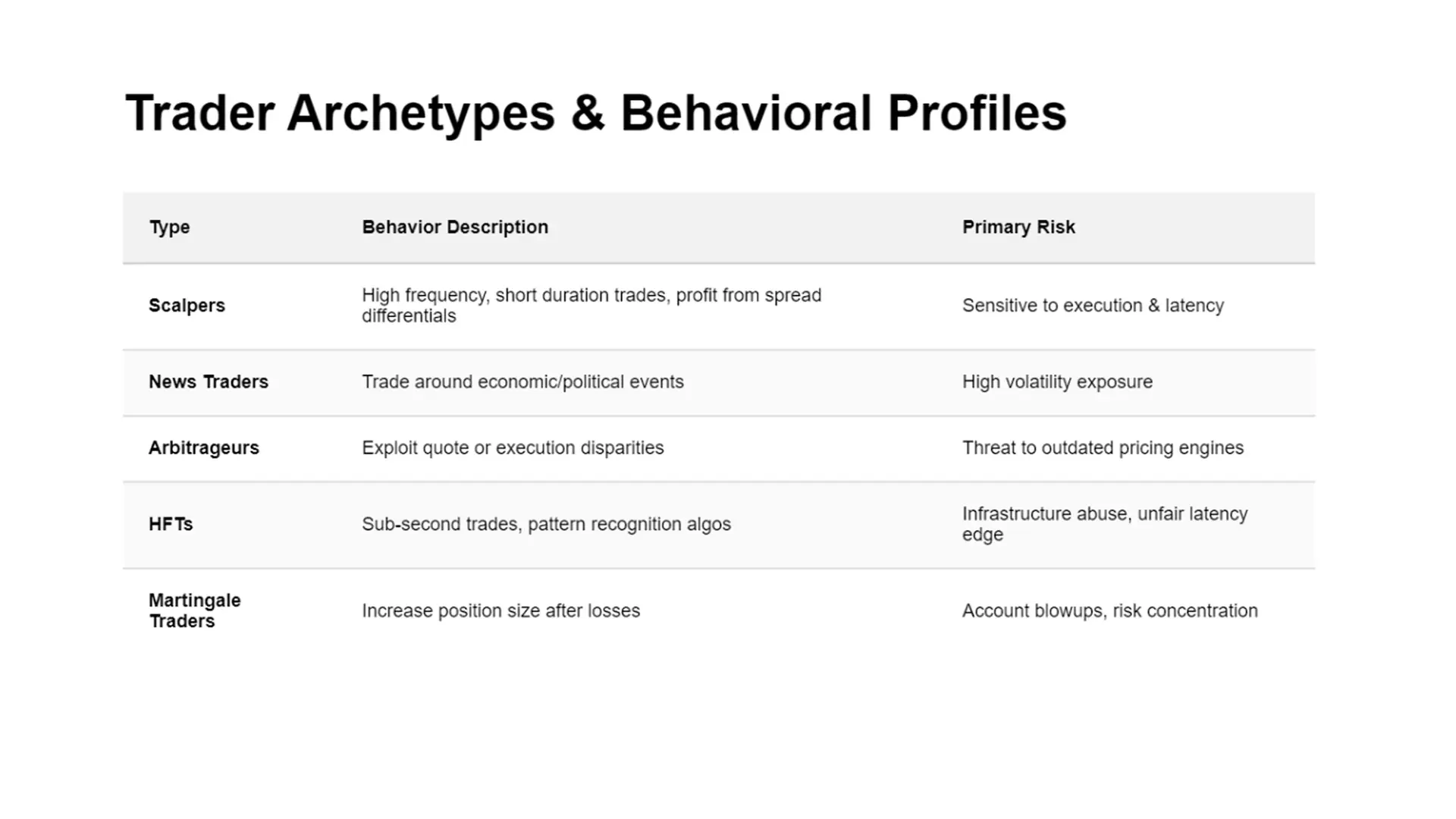 Every trader has a unique fingerprint in the market, shaped by their trading strategy and risk appetite. Understanding the five most common trader behavior patterns is crucial for effective risk management: