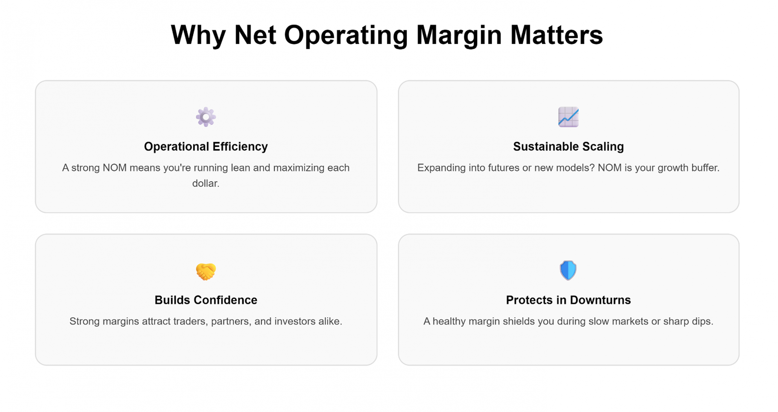- Reveals Operational Efficiency: A strong NOM means your firm runs lean, maximizing every dollar spent on trading tools, market making, or automated trading systems.
